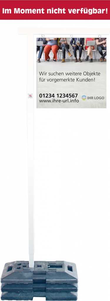 Nach einem erfolgreichen Verkauf tauschen wir das Schild oder bringen einen Überleger auf dem Schild an. Schon sehen es die Leute in der Nachbarschaft und auch Ihre Mitbewerber. Lassen Sie den Galgen weitere zwei oder vier Wochen stehen und profitieren Sie von der kostengünstigen Werbung.